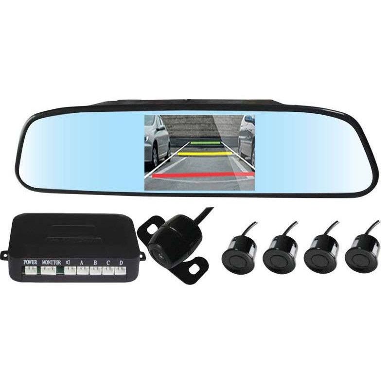 Pachet format din oglinda auto cu ecran de 4.3' camera video si senzori de parcare pentru mersul cu spatele