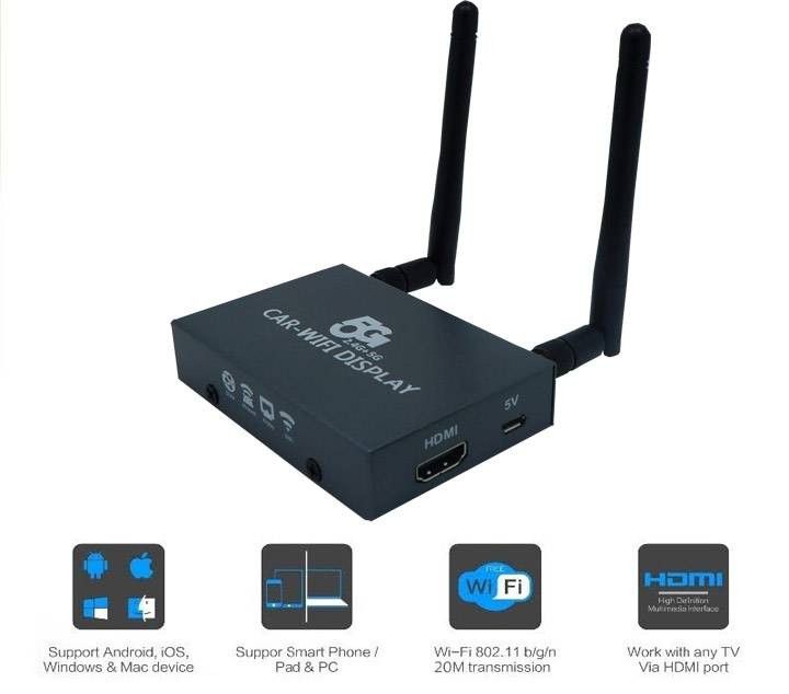 Acest dispozitiv permite afisarea imaginii telefonului android ios sau windows phone pe un monitor cu intrare audio-video rca composite folosind miracast, airplay sau widi